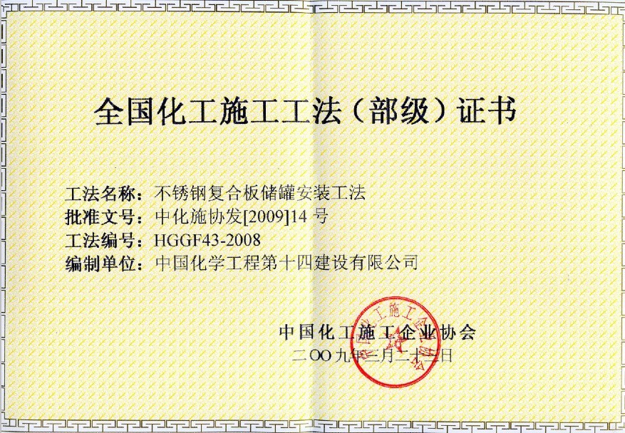 不銹鋼復合板儲罐安裝工法(部級)-中國化學(xué)工程第十四建設有限公司