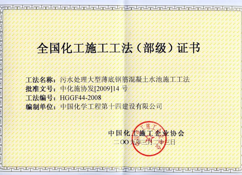污水處理大型薄底鋼筋混凝土水池施工工法(部級)-中國化學(xué)工程第十四建設有限公司