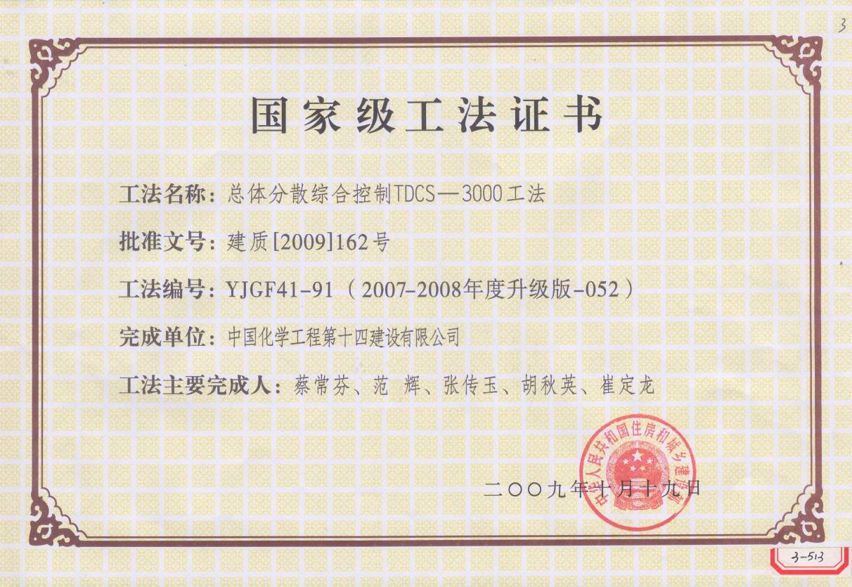 總體分散綜合控制TDCS-3000工法(國家級)-中國化學(xué)工程第十四建設有限公司