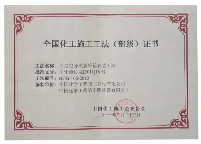 大型空分裝置冷箱安裝工法(部級)-中國化學(xué)工程第十四建設有限公司