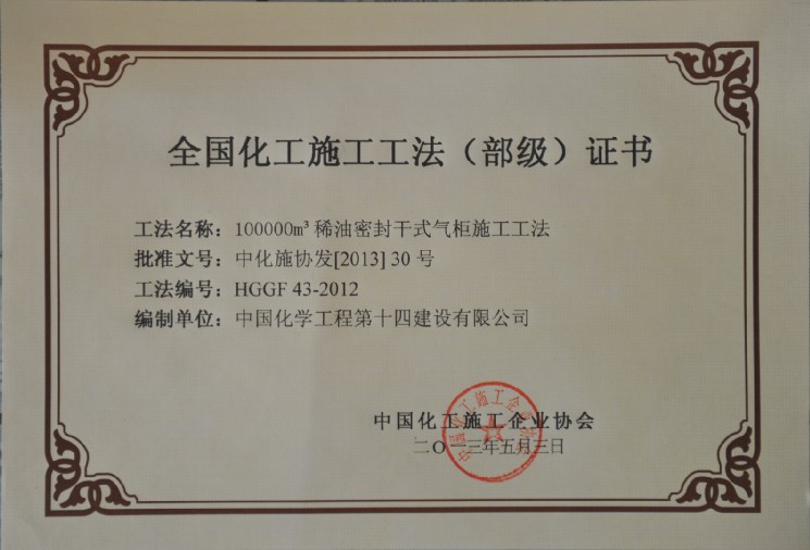 100000m3稀油密封干式氣柜施工工法(部級)-中國化學(xué)工程第十四建設有限公司