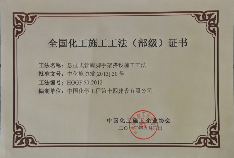 懸掛式管廊腳手架搭設施工工法(部級)-中國化學(xué)工程第十四建設有限公司
