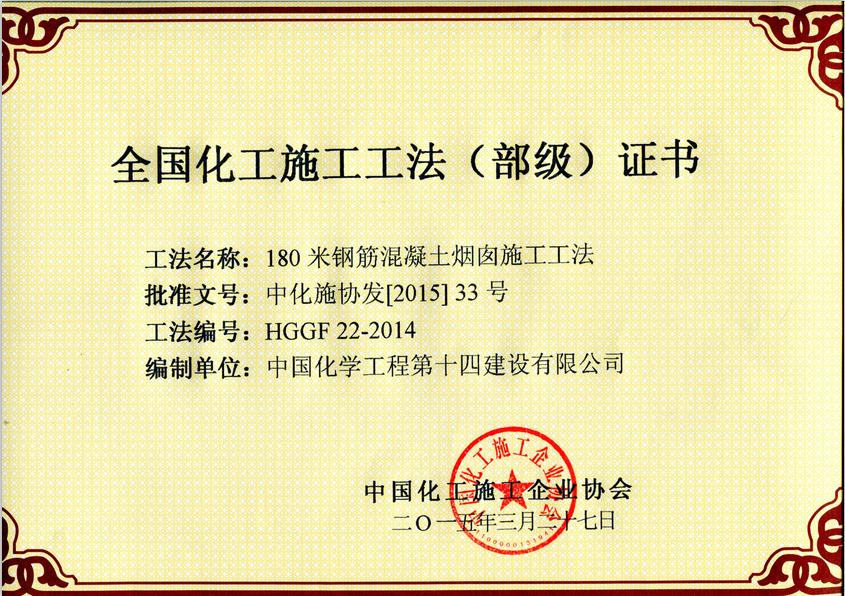 180米鋼筋混凝土煙囪施工工法(部級)-中國化學(xué)工程第十四建設有限公司