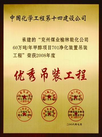 全國優(yōu)秀吊裝工程-中國化學(xué)工程第十四建設有限公司