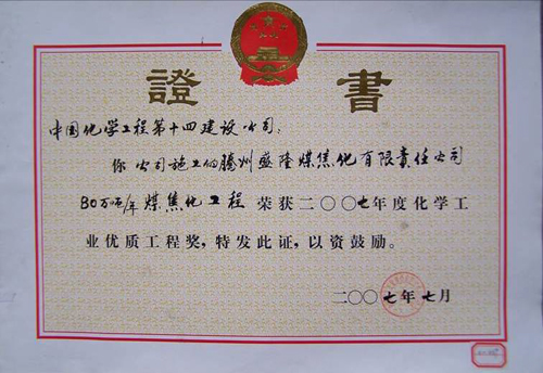 化學(xué)工業(yè)優(yōu)質(zhì)工程獎(滕州盛隆煤焦化)-中國化學(xué)工程第十四建設有限公司