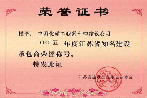 江蘇省知名建設承包商-中國化學(xué)工程第十四建設有限公司