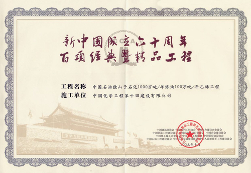 建國六十周年百項經(jīng)典暨精品工程(中石油天然氣股份有限公司獨山子千萬(wàn)噸煉油百萬(wàn)噸乙烯項目)-中國化學(xué)工程第十四建設有限公司