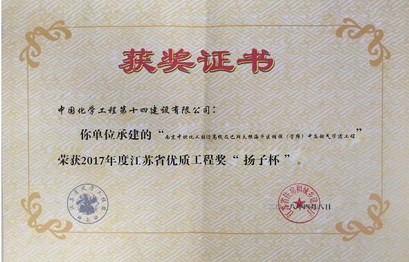 2017年度江蘇省優(yōu)質(zhì)工程“揚子杯”-中國化學(xué)工程第十四建設有限公司