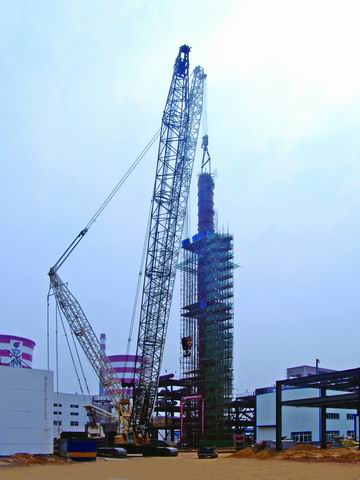 兗州煤業(yè)榆林能化公司60萬(wàn)噸/年甲醇項目C1601甲醇吸收塔分段吊裝-中國化學(xué)工程第十四建設有限公司