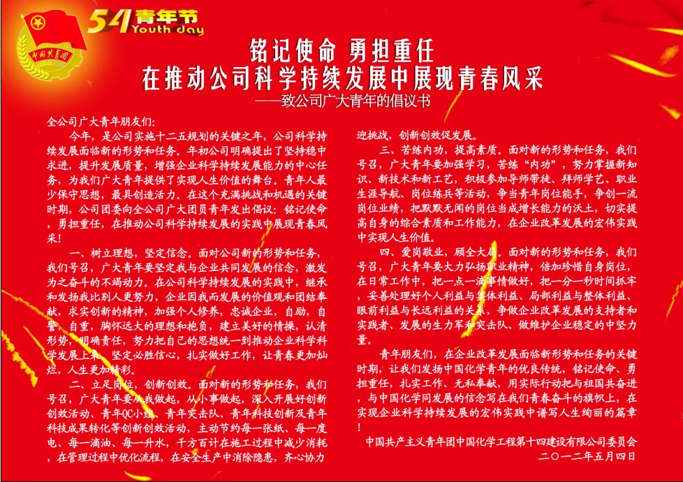 致公司廣大青年的倡議書(shū)-中國化學(xué)工程第十四建設有限公司